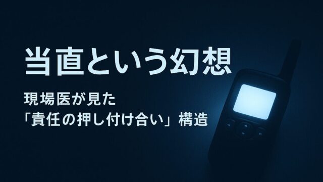 🩺当直という幻想:現場医が見た「責任の押し付け合い」構造