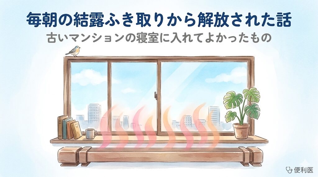 古いマンションの寝室、冬の朝の風景だった。タオルを手に取って、びっしょり濡れた窓をひと拭き、ふた拭き。「またか」と思いながら、半分寝ぼけた状態でこなす、誰得な日課。